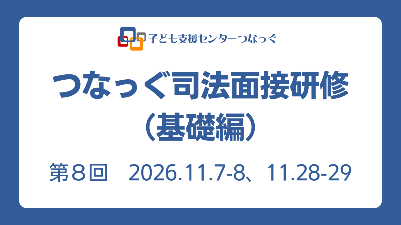 • 【2026/11/7,8,28,29開催】第8回つなっぐ司法面接研修(基礎編)